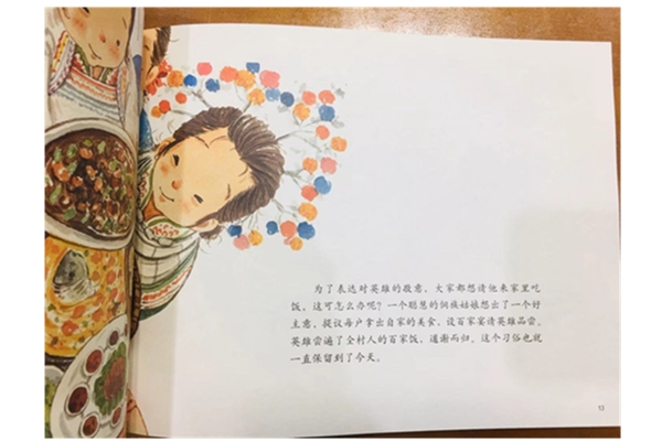 保冬妮著、王俊卿绘的《芒种:百家宴》故事的地点在贵州,贝儿参加侗家百家宴,然后学种田,又去古寨游览