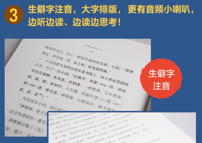 本书在尊重原著的基础上,巧妙地融入了大量的成语和诗词,让孩子潜移默化地学到成语的用法,感受诗词的韵律美。文末的西游小词典,坐拥433个词条,近8万字的内容,解释了西游记中很多俚语俗语及奇闻趣事,是真正的“宝藏”词典。