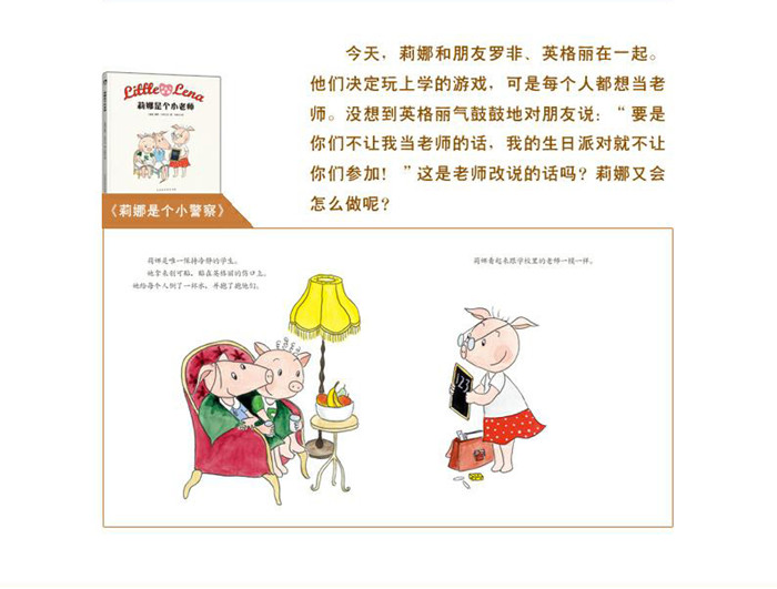今天,莉娜和朋友罗非、英格丽在一起。他们玩上学的游戏,可是每个人都想当老师。没想到英格丽气鼓鼓地对朋友说,“如果你们不让我当老师的话,我的生日派对就不让你们参加!”这是老师该说的话吗?莉娜又会怎么做呢?