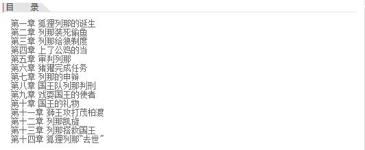 该作讲述的是代表新兴市民阶级的列那狐在面对狮王的强权、公狼的霸道、雄鸡的弱小无助时,总是能以自己的聪明机警左右逢源。它一方面欺压平民百姓,一方面同强权豪门勾心斗角,乃至战胜强大的对手。叙事诗所展示的是中世纪法国各种社会力量矛盾和斗争的错综复杂的局面。