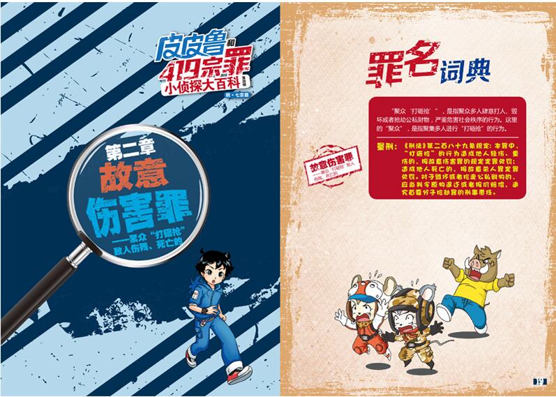 《皮皮鲁和419宗罪小侦探大百科》系列丛书为孩子们准备了有趣的法律知识,每一章十个栏目,想象十足、趣味十足的为孩子们讲解法律知识。孩子们通过漫画故事,生动的了解犯罪的心理和过程;通过阅读百科栏目,了解法律常识;舌战即辩论让孩子们学会从不同的角度思考问题;大法官则是为孩子们量身定制的模拟法庭,让孩子们自己当法官,判断是非对错;有趣的侦探游戏还可以锻炼孩子们的逻辑推理思维,给孩子们带来快乐而真实的体验。