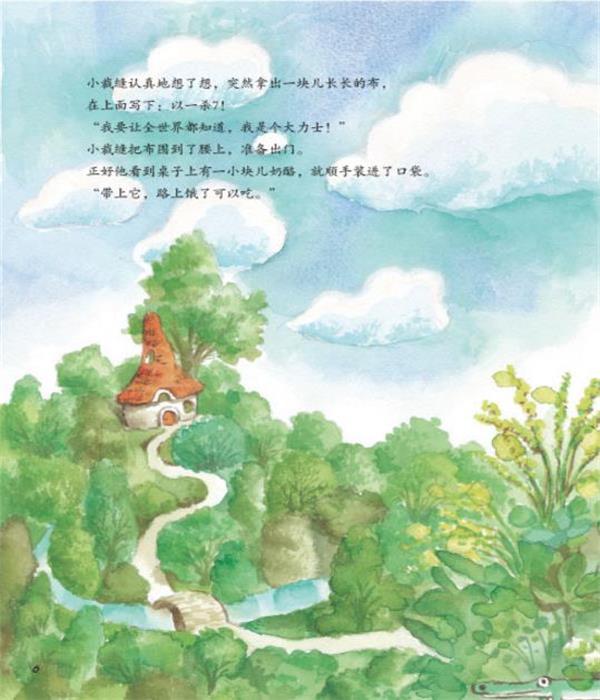 一个小裁缝毛巾一拍就打死了面包上的七只苍蝇,从而很佩服自己,于是系上一条写着"一下子打死七个"的腰带去闯荡世界。他凭着自己的勇敢与机智,发挥自己的优点,隐盖自己的缺点,打败了强大的巨人,凶猛的独角兽和九五至尊的国王,还娶得了美丽的公主,最后还当上了国王。