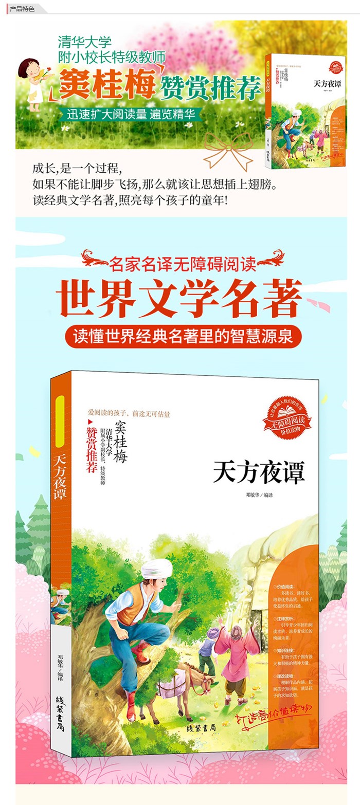 本书故事讲述的是古代一位暴君因王后与人私通,胸中愤恨,便每夜娶一女子,翌晨即杀死,以此报复。美丽聪慧的宰相女儿山鲁佐德为拯救无辜姐妹,毅然前往王宫,每夜讲故事吸引国王,共讲了一千零一夜,终于使国王感悟。本书为“语文新课标名家选”图书系列。
