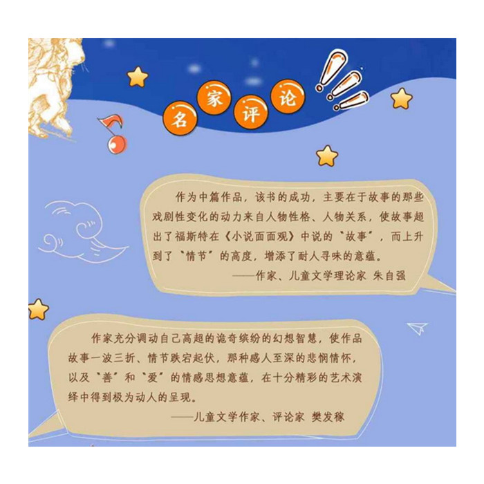 《月光下的肚肚狼》是一部能让你一口气读完的中篇童话,清新明快,语言风趣,情节精彩,引人入胜。 冰波先生在这部作品中,除了保持一贯的优美抒情的风格,还展现了特具的幽默趣味和高超的讲故事的技巧。它不是一个特别惊人的故事,也没有讲什么特别深奥的道理,但是故事的发展丝丝入扣,将读者不知不觉地引入一个优雅的幻想世界,随着情节的深入,每个人物愈来愈清晰地展现在舞台上,我们渐渐感受到那种久违的人与人之间的温情,不禁感动、升华。 主人公肚肚狼是一只能在月圆之夜变成王子的“乞丐狼”。刚开始,肚肚狼变王子只能持续几分钟,然后就变回了当乞丐的样子。而只有当肚肚狼变王子的时间持续24小时后,才可以变成一位真正的王子。