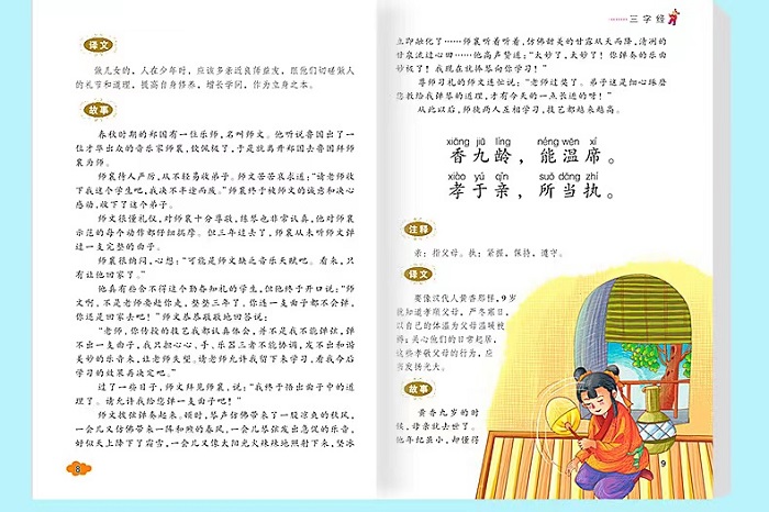 《三字经》是中华民族宝贵的文化遗产,它短小精悍、朗朗上口,千百年来,家喻户晓。全书共-千多字,三字-句的韵文极易成诵,内容涵盖了历史、天文、地理、道德以及一些民间传说等。