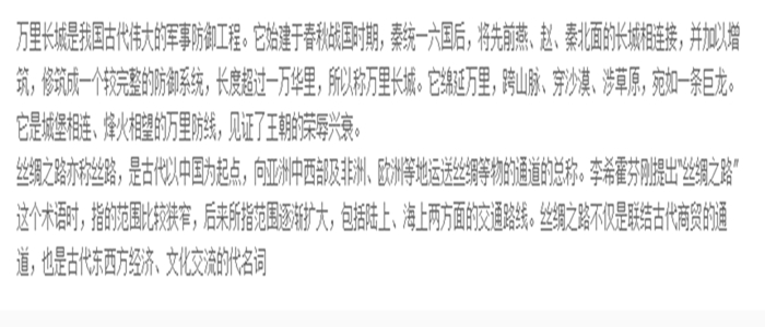 本书全图展开长2m、高38cm,是一本全面介绍万里长城的儿童长卷图画书。长卷正面采用手绘的方式展现了万里长城沿线的地形地貌、人文风情、名胜古迹、历史典故……背面以文字加图画的形式介绍了与主题相关的知识和故事,并以序号的形式在正面标注其具体的地理位置。