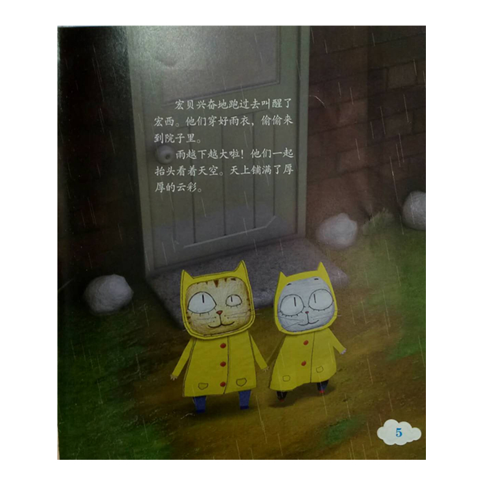 一个下雨天的清晨,小猫家的院子里发生了一件神奇的事情:一朵小云彩挂在了一棵小树上。