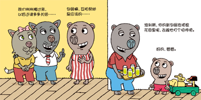 小孩子属于无意识学习的阶段,所以教条的、讲道理的书孩子不喜欢,大人觉得再有用,孩子都不能真正吸收为自己的东西。而《小猪波利斯》这套书完全以孩子的真实生活为故事原型,故事里孩子总是会碰到这样那样的问题,他们用自己的办法解决问题,获得快乐。孩子很容易记住这些搞笑的、好玩的故事,获得故事带给他们的最初的乐趣。当他们在自己的生活中遇到类似的情况并能如故事中的波利斯一样想办法解决问题时,他就能获得故事里传达的深层能量。