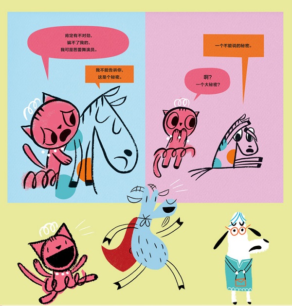 同席以前创作的作品一样,新书“芭蕾猫”系列是一套快乐的童书,里面那只喜欢跳舞的小猫,戴着珍珠项链,穿着蓬蓬裙,像极了爱挑战的小恐龙。书的类型也和莫·威廉斯的《小猪小象》非常相似,都是两个角色一唱一和。席笔下的芭蕾猫非常热情,在小马闪闪对发生的事情感到惭愧时,背景色大胆的变化渲染了情节的感情升华。很幸运,在小马闪闪讲出关于跳芭蕾的“大秘密”之后,两个小伙伴的友谊依然坚定如初。——《学校图书馆期刊》