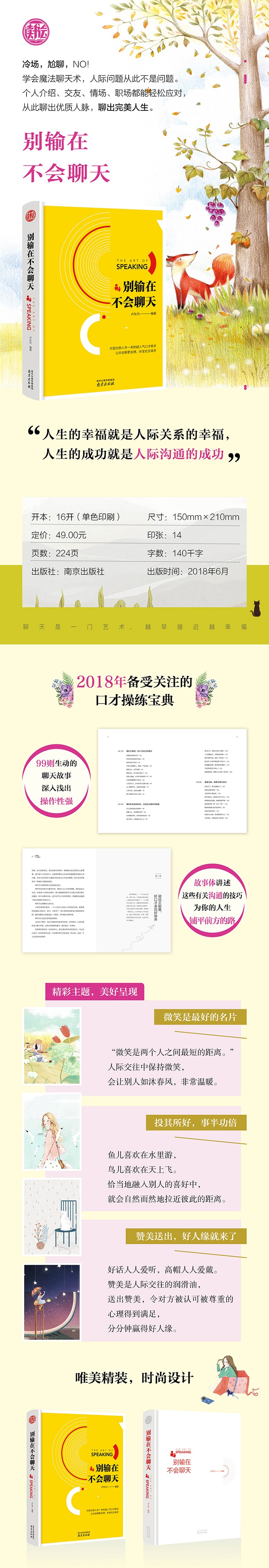 1、这是一本功能强大的职场励志书,近百则生活故事,实景展示聊天技巧,让你会聊更会撩,秒变交际达人。