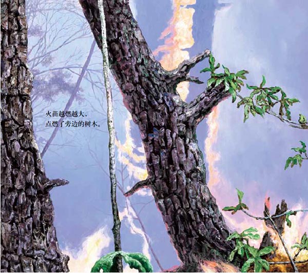 一场山火使原本生机盎然的丛林化成灰烬,但在废墟之上竟奇迹般地冒出了一棵小绿芽儿。这是一本充满希望的书,它让我们坚信:只要不放弃并一直努力,总有一天消失的丛林会再度焕发生机。作者运用了油画的手绘法,让故事更具真实感,相信无论大人还是小孩,在这本用图画说话的、有一点点特别的书中,都能感同身受。