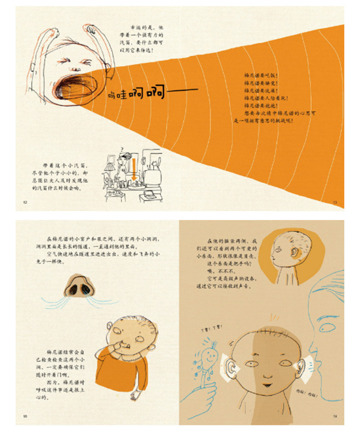 故事记录着每一个宝贝成长的瞬间,每一个瞬间都有父母发自内心的无法言传的喜悦。真实的文字、简单的图画讲述了每个宝贝成长的过程。文字是温柔的诗一般的语言,细腻中透着奶香气;画是简单的线条,却流动着爱的呼吸。然而在图画和文字之外,我们还能体会到关于人生的哲理。同一本书,同一个故事,大人和孩子可以读出不同的含义。孩子可以简单地读出纯真,了解自己出生、成长的经历;成人却从中感受父母曾经的爱,减去成人世界沉重的负担,重新回到自由的童年。与其说梅尼诺有魔法,不如说这个故事有魔法,作者会魔法。这种魔法让每个人都能找到本真的自我。