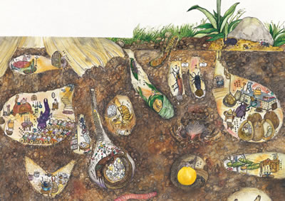 细致丰富的图画与自然生动的故事,描绘了昆虫世界里各种各样的奇妙住宅。昆虫们用它们智慧的头脑、灵巧的足,建造出了独具特色的房子。画面用季节做线索,以日本关东地区为背景,采用独特的形式,介绍了生活在原野里、池塘中和树木上的昆虫们的家。作者的选材看似寻常,但其独具的视野与切入角度,既呈现了大自然的奥秘,也强迫我们正视大自然的无言与生存的真相。