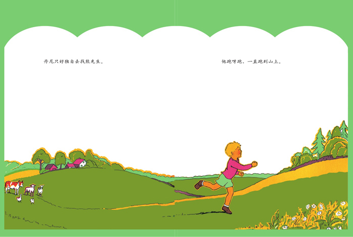 一路上,他遇到了母鸡、母鸭、山羊、绵羊和奶牛。大家都愿意帮他,可他们能给的妈妈都有。最后,丹尼找到熊先生,终于知道了该送什么给妈妈。