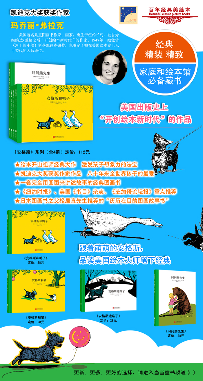 书中的图画生动、有趣,充满悬念的故事让读者欲罢不能……可以说,这本书真的拥有了令孩子们喜爱的特质……玛乔丽弗拉克笔下的这只小狗,让读者实在难以抗拒。