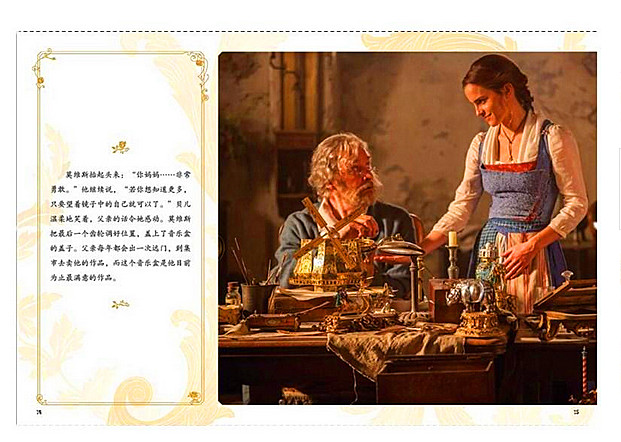 本册故事源于迪士尼动画电影《美女与野兽》,精选约100张全真剧照,故事描绘了一位王子因为自私、不懂爱被魔法师变成野兽,解除魔咒的方法是后一片玫瑰花瓣凋落之前,遇到不在乎他长相,真心爱他的人。为解救父亲将自己留在野兽城堡的姑娘贝儿,在城堡居住的日子,贝儿和野兽在相处中渐生情愫,互相产生爱慕之前,后魔法被成功解除,野兽恢复了人性,与贝儿生活在一起的故事。
