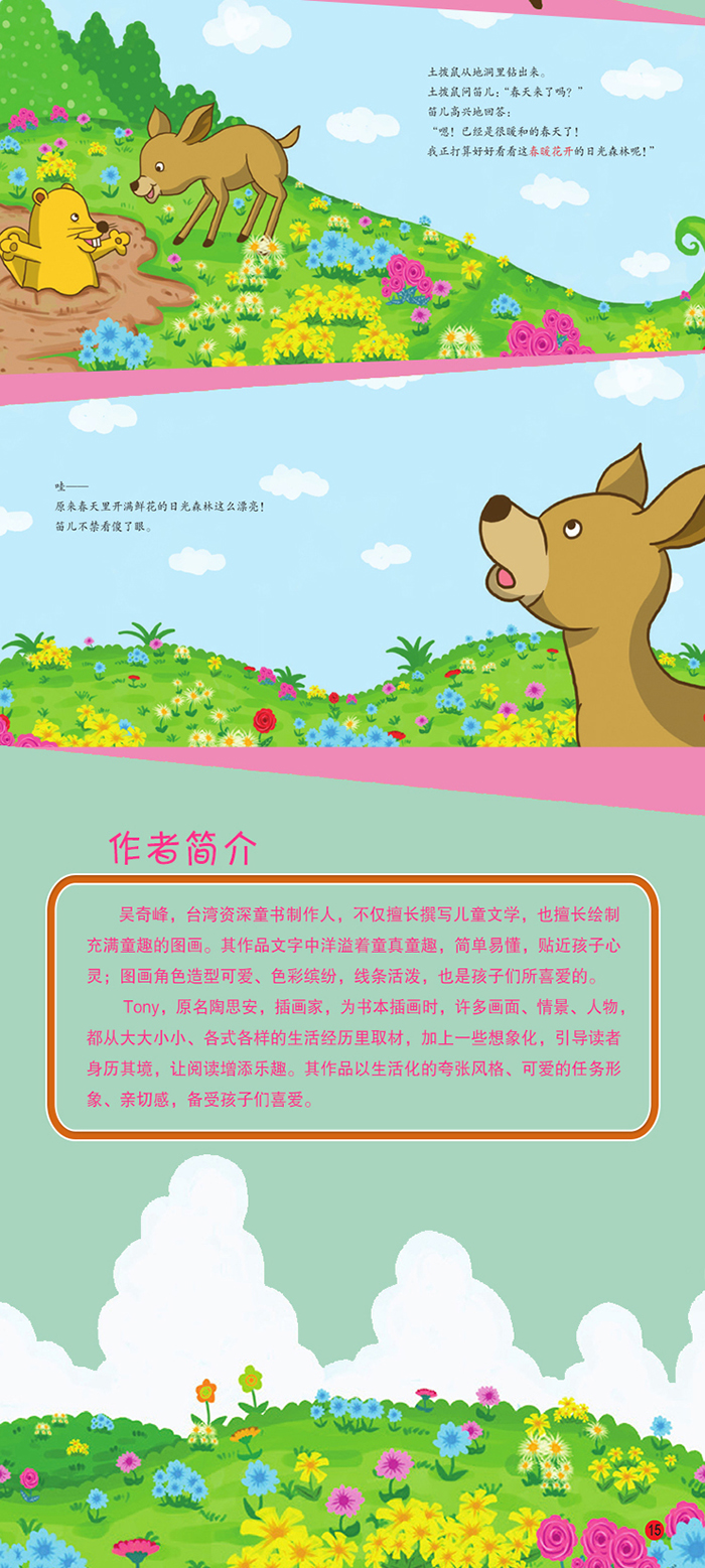 冬天过去了,日光森林里的白雪慢慢地融化了。草儿探出了嫩嫩的绿芽;花儿一朵、一朵地开放了:红的、黄的、紫的、白的……春暖花开的日光森林真美啊!请小朋友猜一猜,在春暖花开的日光森林里会发生什么故事呢?