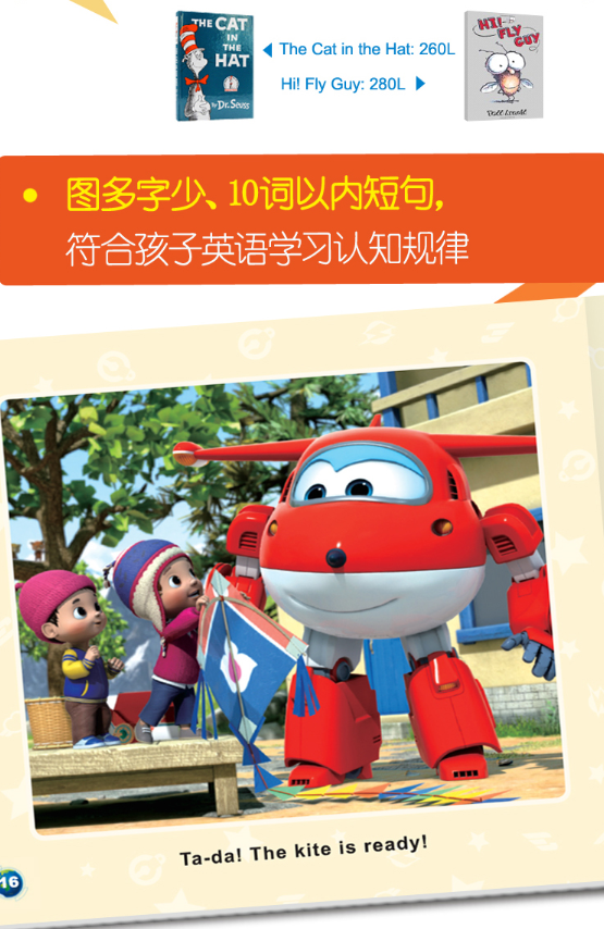 美国Lexile®专业测评,蓝思指数210~360L,英文词汇180~250个,与美国入门级儿童绘本难易度相当,让孩子与美国儿童同步阅读!