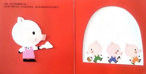 《小手摸摸读童话·三只小猪》是一本引进自法国的创意图画书,讲述了三只小猪智斗大灰狼的故事。故事的主要内容是:三只小猪要离开父母独自生活了,他们决定各自盖一座房子。第一只小猪盖了一座茅草屋,第二只小猪盖了座木头房,第三只小猪盖了座砖头房。饥饿的大灰狼来了,他一口气吹飞了茅草屋,又一口气吹飞了木头屋,但是却对砖头房束手无策。大灰狼决定从烟囱里进去,结果掉进了小猪们早已准备好的锅炉里。从此以后,小猪们愉快地生活在了一起。