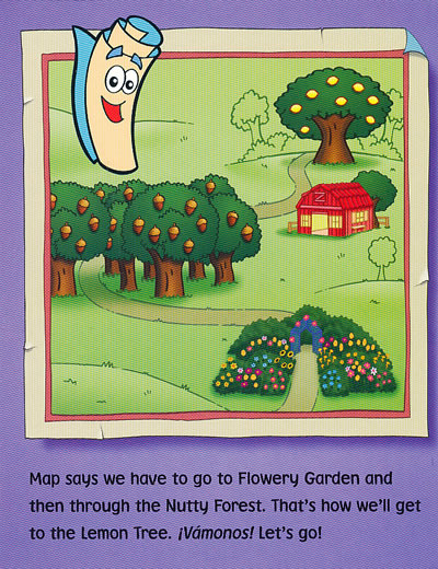 Dora and Boots go through Flowery Garden and Nutty Forest to find lemons for the lemonade float