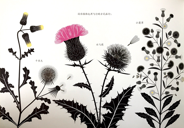 《植物的旅行》是一本科普绘本,引进自法国,适合3~8岁儿童阅读。艺术家埃米莉·瓦斯特用她唯美细致的图画给孩子们描绘了植物的10种繁衍方式,生动有趣,知识丰富。那些看起来似乎静止不动的植物,其实很有冒险精神,一起看看它们是怎么旅行的吧!蒲公英的种子会随风飞翔;草莓又细又软的茎会在地上爬行;栗子会跳起来,滚呀滚呀,滚到别的树下;牛蒡长着小钩子的刺球能抓住狐狸的毛,让狐狸带它旅行;树莓的种子则在田鼠的肚子里旅行……还有一些植物能坐飞机、坐汽车呢!留意一下你身边的植物,它们是怎么旅行的。