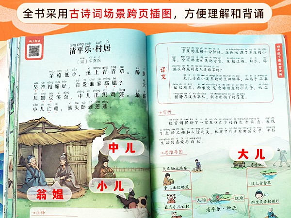 75首按照一~六年级的顺序划分,所选古诗皆为课本中必备的古诗(也就是课文里的古诗,不包含语文园地和日积月累这些延伸的古诗),帮助孩子明确背诵重点,精准的背诵所需内容