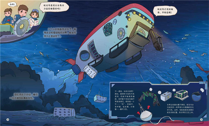 这是一本聚焦我国首台自主设计、自主集成研制的作业型深海载人潜水器“蛟龙”号的科普绘本,由自然资源报记者徐小龙倾情创作。全书以小主人公宥宥跟随潜航员乘坐“蛟龙”号执行马里亚纳海沟深潜任务为主线。带孩子身临其境地体验“蛟龙”号从准备到入水再到下潜并最终返航的完整过程,了解“蛟龙”号执行深潜任务的每一个关键步骤以及在不同海洋深度的操作与见闻。