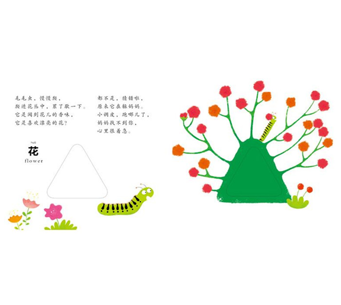 洞洞书,意思就是几乎每页都会有镂空的小洞洞,围绕洞洞会有意想不到的故事发生,学龄前的宝宝在某一阶段会非常喜欢抠东西,戳洞洞,像小螺丝,插线孔,这正是宝宝精细小动作发展敏感期的表现。宝宝在抠、挖、戳的过程中不仅会促进手眼的协调能力,还能增加孩子对未知事物的探索欲望。袋鼠妈妈童书编著的《神奇洞洞书》就是专门针对1—4岁这一特殊时期的宝宝定制的,科学的内容,精巧有趣的画面,特别的文字创意,精良的制作,全面开发宝宝对数字、颜色、事物观察、对比关系的认知和探索。培养宝宝的专注力、观察力、认知力、判断力、比较力和抽象力。 在欧美洞洞书被誉为“开创了纸板书的新纪元”它是充满了童趣和创意的纸板书。作者用趣味的文字结合活泼明快的色彩,让宝宝翻开每页都有惊喜,快带着宝宝共同体验这有趣又美妙的亲子共读之旅吧! 本册为《毛毛虫藏哪儿了》。