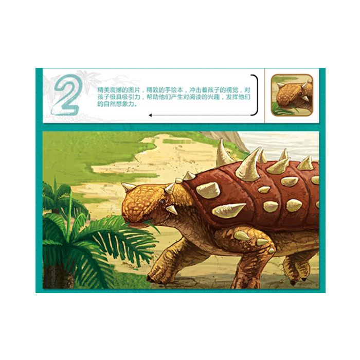 书中将知识巧妙融入故事片断,饶有趣味地向孩子们道出了150余个族群恐龙的各种知识,包括恐龙生存的时代和地点,以及邻里恐龙间的捕食与被捕食关系、婚配、竞争、合作等,真实再现了亿万年前恐龙繁盛的壮观实况和轰轰烈烈的弱肉强食场面。与其他恐龙百科相比,不同之处在于,这套书基本上将同一地区、同一时期的恐龙放在同一场景中,场景化编排,用一段段故事将恐龙联系起来,重现恐龙时代真实发生的情境,采用恐龙自述的方式,告诉孩子恐龙的众生相、邻里间的相处、好恶喜厌、故友仇家等信息,将恐龙全方位的知识融于故事之中。