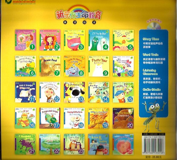 《新东方生命教育美语绘本2:英汉对照(套装共10册)》包括《好心的小兔子》、《路易斯和爷爷》、《小猴子的生日礼物》、《我答应!》、《在动物园的一天》、《露营去喽!》《为何不是我?》《胖个儿与瘦个儿》《凯文的神奇礼物》《雨叔叔在哪里?》。精选9个妙趣横生的美语故事,作为生命教育理念的载体,让孩子在故事中体会优质生命教育的理念。一《新东方生命教育美语绘本2:英汉对照(套装共10册)》撒播一片希望,翻开本套书,您收获的,将是生命教育带给您的感动与共鸣!