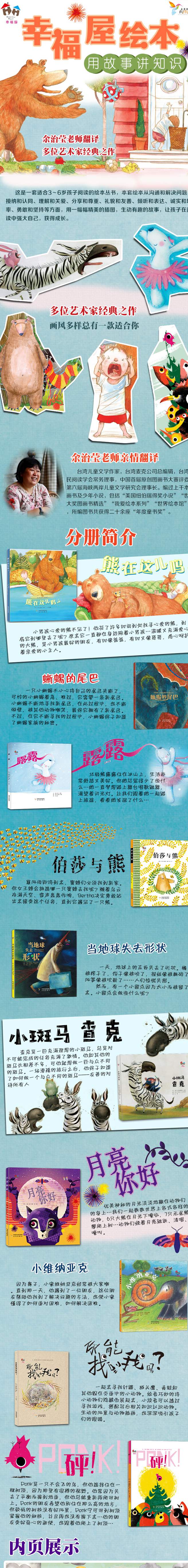 绘本从沟通和解决问题、接纳和认同、理解和关爱、分享和尊重、礼貌和友善、倾听和表达、诚实和坦率、勇敢和坚持等方面,用一幅幅精美的插图,生动有趣的故事,让孩子在阅读中强大自己,获得成长。