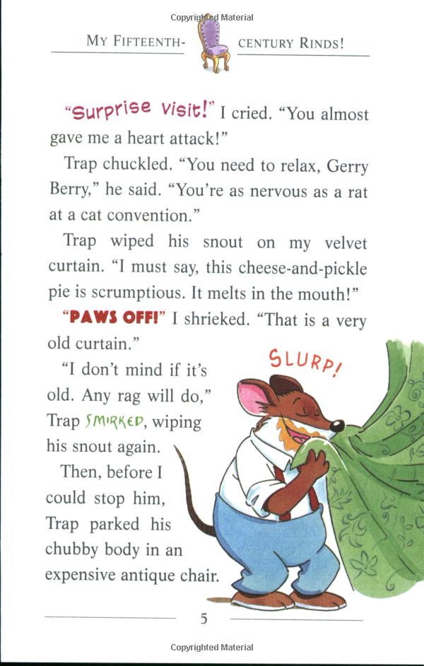 Holey Cheese! Imported from Italy, this snazzy series debut about a globetrotting mouse journalist spreads the cheesy puns nice and thick. On an average day, Geronimo Stilton edits The Rodent's Gazette, the newspaper of New Mouse City, capital of Mouse Island. But at the coaxing of his sister, Thea, and various relatives, Stilton sates his yen for adventure-and adventure writing-by embarking on various excursions and recording and illustrating his exploits in a diary that serves as source material for his books. Stilton, Thea, cousin Trap and nephew Benjamin board a ship in search of buried treasure on a secret deserted island. The trip is filled with peril and plenty of humor, though the treasure isn't what anyone expected. The book's lightning pace and its numerous chapters, as well as a full-color design that displays key words in color type and fun fonts, will hook kids in a flash. And those with a taste for Stilton's breezy style will surely want to devour future "whisker-licking-good stories," as the author calls them. The first four book in the Geronimo Stilton series will be released simultaneously, followed by one book per month thereafter