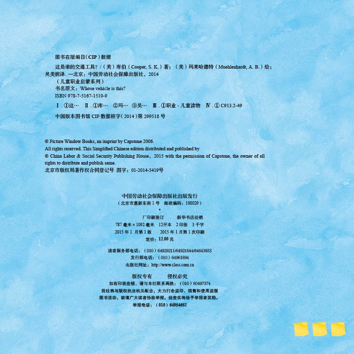 《这是谁的交通工具》从工作中使用的交通工具这个视角,向小读者娓娓道来各种从业人员的职业和工作内容,包括七个职业。最后还提供了一些推荐读物和网络资源,利于孩子进一步探索感兴趣的相关职业。
