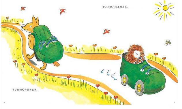 这是一本特别适合子共读的绘本。讲的是一只大熊,它住的房子,穿的鞋,用的锅,都大得不得了。比如,它的鞋有豪猪开的车那么大,它用的锅有老鼠的游泳池那么大。反复出现的“要说到底有多大嘛”的噱头,非常刺激儿童的想象力。