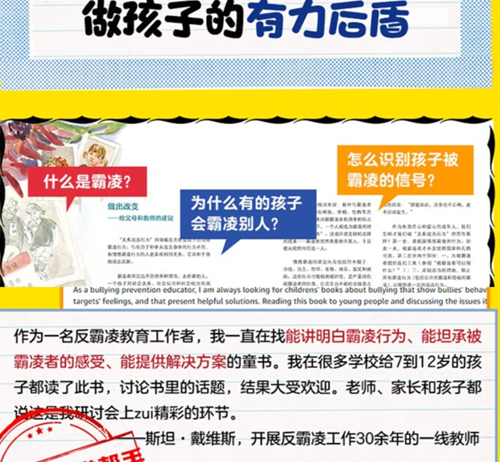 反霸凌专家评价这本书: 旨在让小读者们懂得何为责任感的童书可谓凤毛麟角,但《对不起啦!》无疑是其中之一。特鲁迪·路德维格这个引人深思、独一无二的故事既向孩子们展示了道歉 的力量,也教会他们承认自己的伤人行为,并纠正自身错误。为孩子和大人提供了关于同情心和同理心的宝贵人生经验。 故事站在受害者、纵容者的角度,让人深深体验到「不真诚的道歉」带来的伤害。故事之后,大篇幅的后记、作者按、问题讨论、注意事项可以说是抽丝剥茧、手把手地教会孩子和大人如何面对错误,如何有效道歉。
