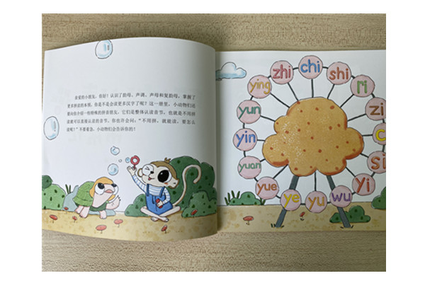 •画面丰富,贴近儿童心理:书中包含众多可爱卡通形象,如大眼猴、喔喔鸡、嘟嘴鱼等,每一个小动物其实就是孩子自己,他们的动作表情、活动场景,都是孩子们熟悉的,让孩子们产生亲近感和共鸣。靓丽的画面、鲜艳的色彩,图文并茂的编排,能吸引孩子们的注意力,让孩子们爱上学拼音。