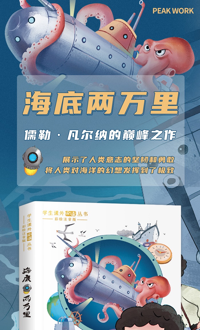 该小说主要讲述了博物学家和生物学家阿龙纳斯、其仆人康塞尔和鱼叉手尼德·兰一起随鹦鹉螺号潜艇船长尼摩周游海底的故事。