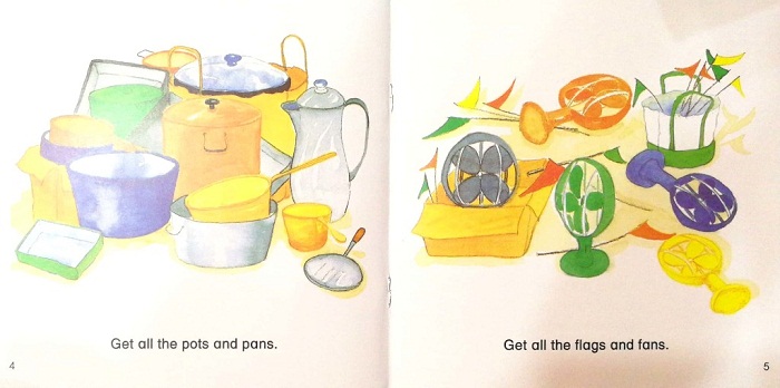 语言学习:本级图书每页2~3个句子的情况增多,单个句子*长的达每句10个单词。同一本书仍以反复运用同一句型为主,但已多了一些变化。通过替换少量单词,强化句型规则。