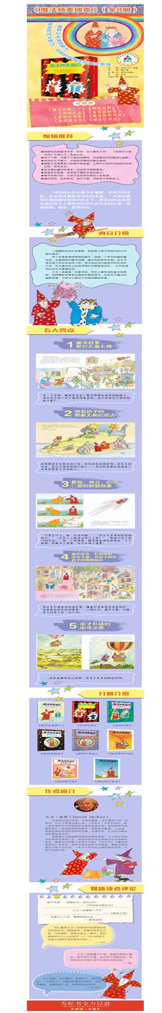 大卫·麦基是一位著名的、深受儿童欢迎的童书插画家。他的精彩故事里充满各种搞笑细节。这些关于魔法的幽默故事,为孩子们提供了完美的睡前故事。