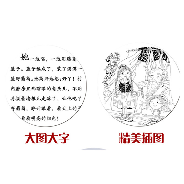 其中,《野葡萄》描写了一位纯洁善良的白鹅女,被凶狠的婶娘弄瞎了明亮的双眼。她历经千难万难,终于找到了能治眼病的野葡萄。她刚治好自己的眼睛,就摘了满满一篮野葡萄,沿途治疗碰到的盲艺人和村里的磨房老爷爷等,并用它治好了婶娘女儿的眼睛。为了把野葡萄带给世上其他盲人,白鹅女毅然抵挡住了荣华富贵的诱惑,在山神的帮助下,离开荒山,把光明带向人间。