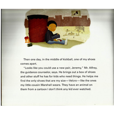 All Jeremy wants is a pair of those shoes, the ones everyone at school seems to be wearing. Though Jeremy’s grandma says they don’t have room for "want," just "need," when his old shoes fall apart at school, he is more determined than ever to have those shoes, even a thrift-shop pair that are much too small. But sore feet aren’t much fun, and Jeremy soon sees that the things he has — warm boots, a loving grandma, and the chance to help a friend — are worth more than the things he wants.