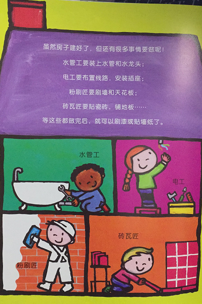 本套书介绍了每个职业所需要的工具及穿的制服,同时以小故事的形式讲解了每个职业每天需要做哪些事情,让孩子在故事中可以更加深入的体验该职业。书中画面简介大方,色彩艳丽,颜色搭配符合小朋友的视觉发展。