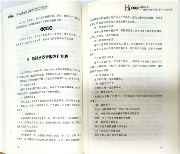 本书从心理学角度解读销售活动,涉及心理学和营销学两个学科的内容,以销售活动为主线,配合相关的心理学术语,系统而科学地讲述了心理学在销售活动中的应用。对销售人员在销售过程中的不同阶段,消费者的不同心理,以及销售人员应该怎样去面对客户等方面都作了详细介绍,相信会对销售人员的工作有着很强的指导作用。