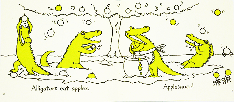 一阶段 Alphabet 12本书,每本12页,有趣的动物和食物让孩子学习26个字母和发音;每本书的单词都选用相同首字母发音来学习特定的字母,妈妈读给孩子听,孩子将发现字母与读音之间的关系。