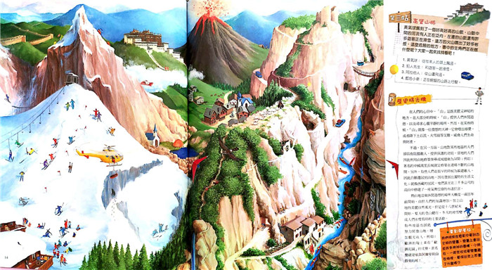 用360度的邏輯思維,可以看見全世界 黃氣球與其他主角們的冒險之旅即將開始,到底黃氣球、犯人先生、阿拉伯人與藍色小車,他們要出發到哪裡去呢?本書主頁為無字書,透過隱藏在拉頁中的小提示,讓孩子動手掀開拉頁的同時,開啟尋找觀察的精采遊戲,並一同了解該場景的歷史百科小知識。