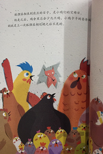 这是一则家喻户晓的寓言故事,说的是狐狸凭自己的智谋逃出了虎口。后来用来比喻依仗别人的势力欺压人。狡猾的狐狸凭借老虎的威风,在森林中吓唬别人。绘本是在这个原版寓言的基础上,进行了创意改编,从小鸡的角度出发,聪明的小鸡面对欺压时,想出了一个计谋,吓跑了狐假虎威的狐狸,演了一把“鸡假虎威”!