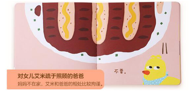 “二分之一”系列绘本一套两册,包括《开饭啦!胖达》和《开饭啦!艾米》。 《开饭啦!胖达》讲的是妈妈叫熊猫胖达吃饭,胖达太爱吃饭了,吃了面包、烤肉饭、宽面、甜甜圈等还没有吃饱。最后胖达因为吃了太多东西而闹肚子了。 妈妈对儿子胖达了如指掌,知道胖达不挑食、爱吃饭,有时候甚至会控制不住自己的食量,所以一直劝胖达不要吃得太多,身体健康最重要。通过《开饭啦!胖达》的故事,我们看到了一个贪吃、邋遢、不拘小节又嘴甜的阳光小吃货胖达。 《开饭啦!艾米》讲的是妈妈不在家的时候,爸爸陪小鸡艾米吃饭。艾米是个挑食的孩子,爸爸端来了面包、烤肉饭、宽面、甜甜圈等美食,艾米都不感兴趣。最后爸爸终于发现艾米爱吃的食物了,艾米开心地吃了一盘又一盘。爸爸平时忙于工作,对女儿艾米疏于照顾,不了解艾米喜欢吃什么。只能通过一次次地尝试,寻找艾米喜欢的食物。对于挑食的小艾米,爸爸煞费苦心劝她...