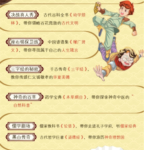这套《少年国学游》将庄重的文本和儿童文学进行了一次创新的融合,以传统国学经典的知识精粹为纲要,内容涉及文化、历史、地理、经济、风俗、生活诸多方面,以冒险故事的形式,告诉小读者,美的东西如此广泛,不论你从哪一个角度介入,都是中国传统中非常有价值的一部分。