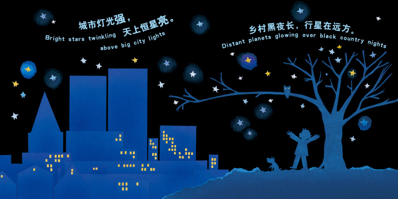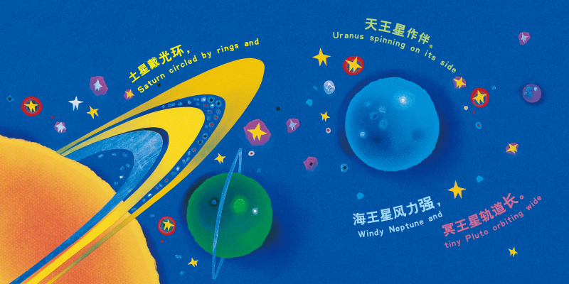5. 书中的文字部分采用押韵的短句,每页一个句子,头尾押韵,是说明也是小诗。句子非常朗朗上口,适合儿童跟随朗读,享受中英文童谣韵律美感。