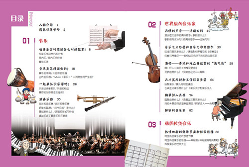 本书以“音乐”为主题,让孩子们跟随主人公一起学习乐理、乐器和音乐家的相关知识。本书中向孩子们介绍了什么是音乐,音乐的种类和起源,乐谱和乐器演奏的基本知识,巴赫、海顿、莫扎特、贝多芬、肖邦等世界级著名音乐家以及韩国本土的音乐知识。本书是以漫画故事的形式向孩子们普及音乐知识,拓宽他们的知识面,激发他们的求知欲,而漫画的有趣情节和图画地夸张诙谐,也会让孩子们对他们可能并不熟悉的音乐知识充满好奇。